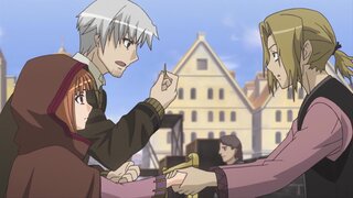 Любит человек побеждать мать-природу. Вот и крестьяне предпочли новые посевные технологии надежде на Богиню-волчицу Холо, тысячи лет охранявшую их урожай. Затосковала Богиня, но древний договор отменить могли только люди, давно о нем позабывшие. И тут нежданно-негаданно её освободил некто Крафт Лоуренс — парень видный, ловкий и сообразительный, ведь иными бродячие торговцы и не бывают. Приняв облик девушки, Богиня сделала Лоуренсу предложение, от которого он не смог отказаться — отвезти её домой, на родной Север, и обещала, что внакладе молодой купец не останется. Парень и сам очень рад поскорей покинуть деревню, где красотка Хлоя в свою очередь предложила такое, после чего близко знакомятся либо с шерифом, либо со священником.