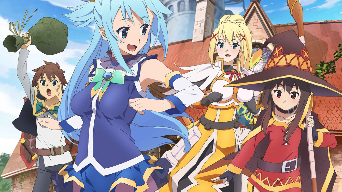 Погибший геймер Кадзума пытается освоиться в ином мире. Приключенческая аниме-комедия по Нацумэ Акацуки